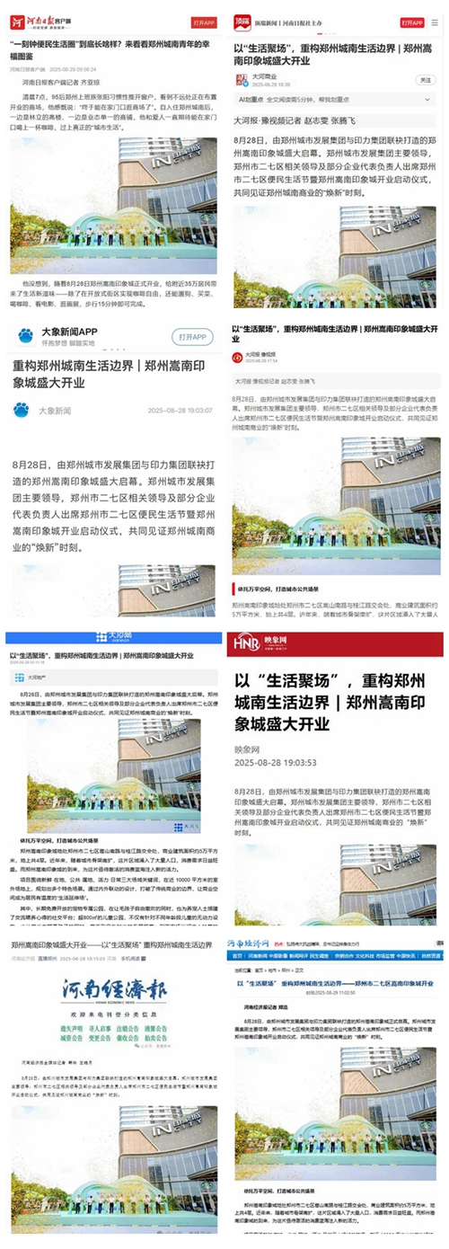 8月28日,鄭州城南商業(yè)格局迎來重大變革,由鄭州城市發(fā)展集團(tuán)與印力集團(tuán)攜手打造的鄭州嵩南印象城盛大啟幕,開業(yè)首日客流達(dá)12.6萬人次,迅速成為全城矚目的焦點。這一盛事引發(fā)了各大媒體的廣泛關(guān)注,河南日報客戶端、頂端新聞、大象新聞、大河報、大河網(wǎng)、映象網(wǎng)、河南經(jīng)濟(jì)報、鄭州日報、鄭州晚報、鄭州廣播電視臺等媒體紛紛聚焦,對其開業(yè)進(jìn)行了全方位、多角度的報道。